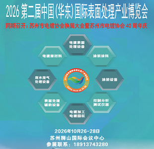 •  10-102026第二屆中國(guó)(華東)國(guó)際表面處理產(chǎn)業(yè)博覽會(huì)